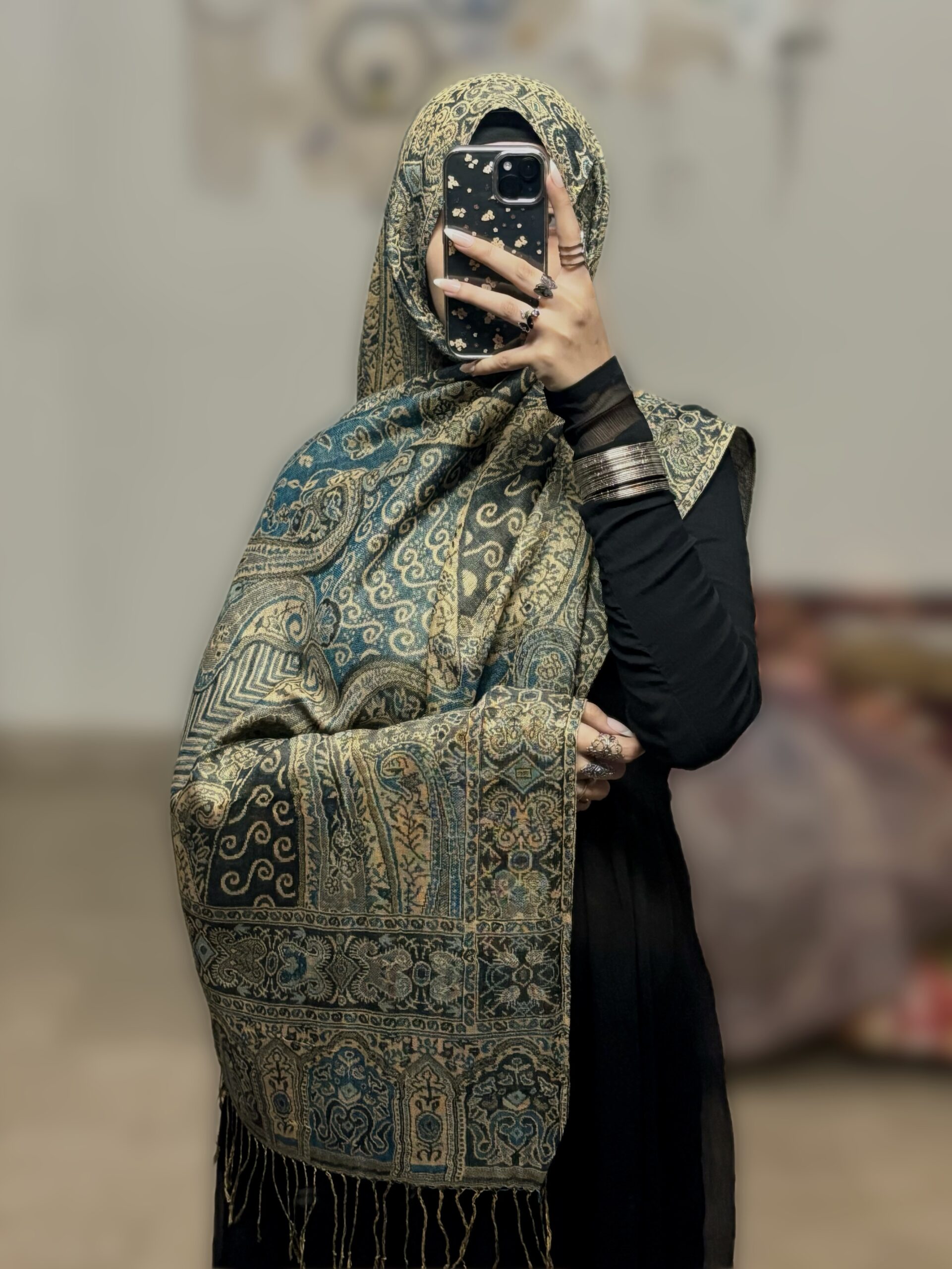Fabric: Premium Pashmina blend – soft, warm, lightweight & breathable